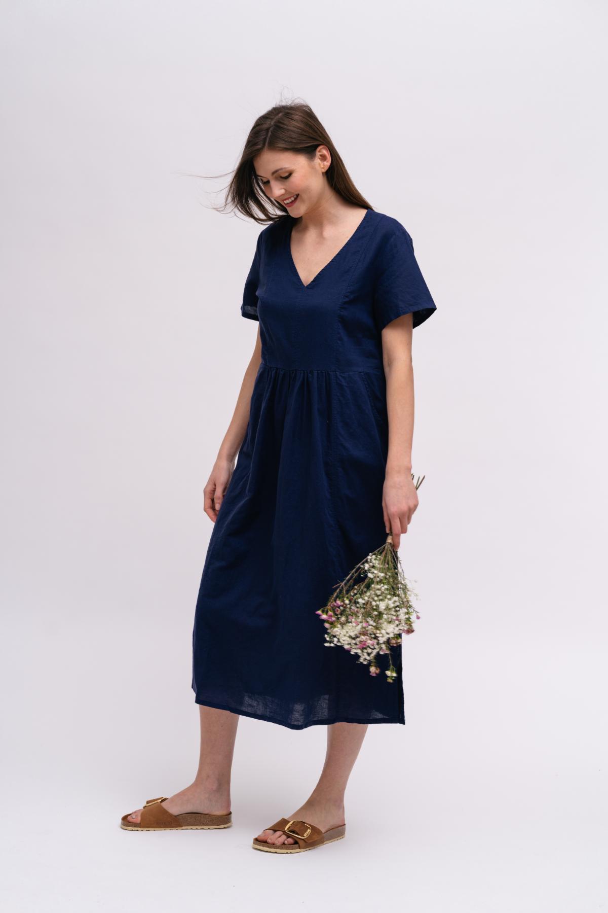 Das Kleid ist genau das, was ich schon immer gesucht hab: Leicht und knitterarm, weil ich gerne mit Handgepäck auch in längere Urlaube reise, gemustert, man sieht nicht gleich jeden Fleck, mit Arm, gut gegen Sonnenbrand, und außerdem von der Größe her passend mut schöner Midilänge und auch noch einfach schön!.