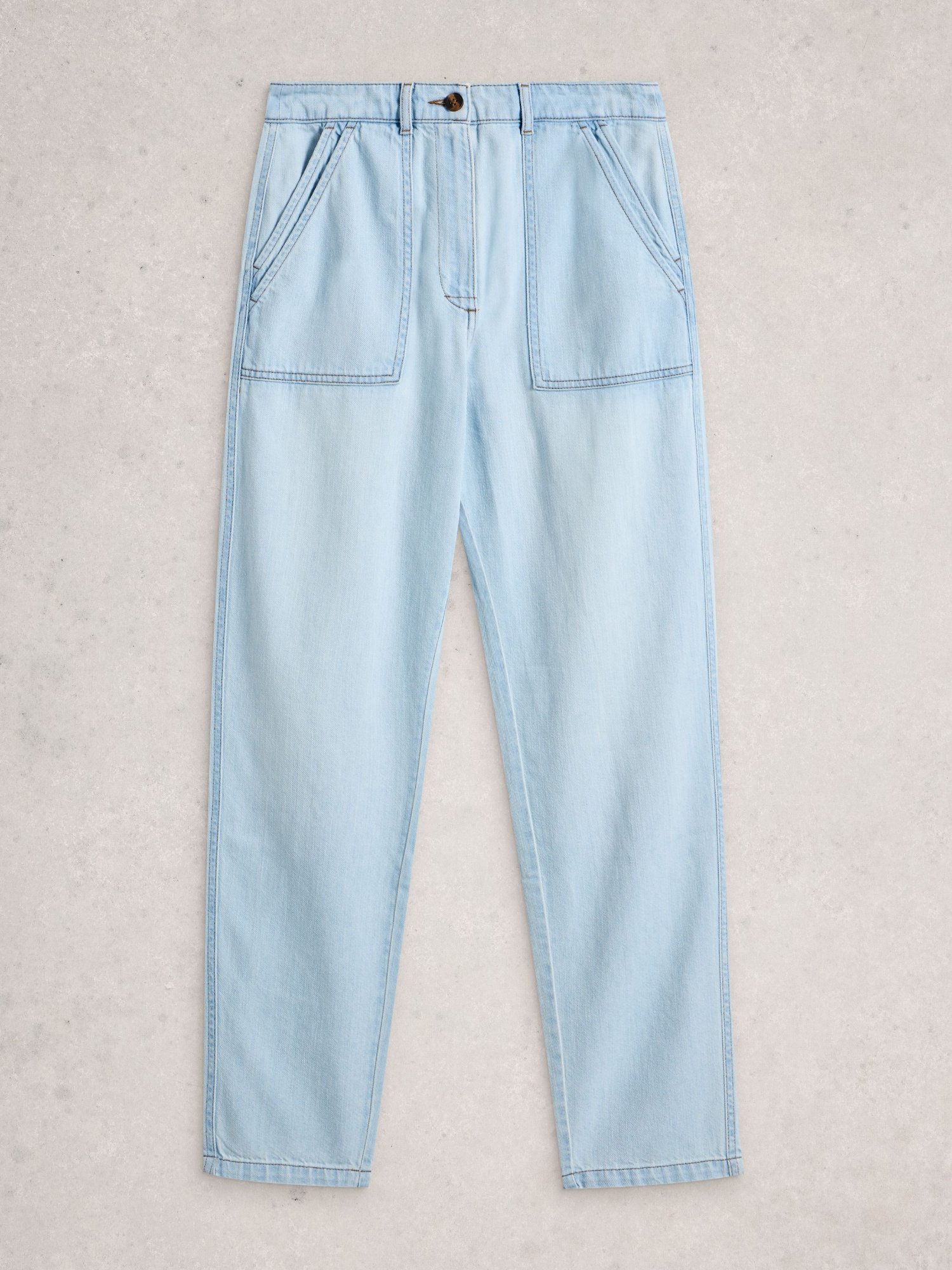 Helle Jeans mit modernem Schnitt, ideal für Stadt und Wochenende. GOTS-zertifizierte Bio-Baumwolle und leichte Elastizität sorgen für angenehmen Tragekomfort.