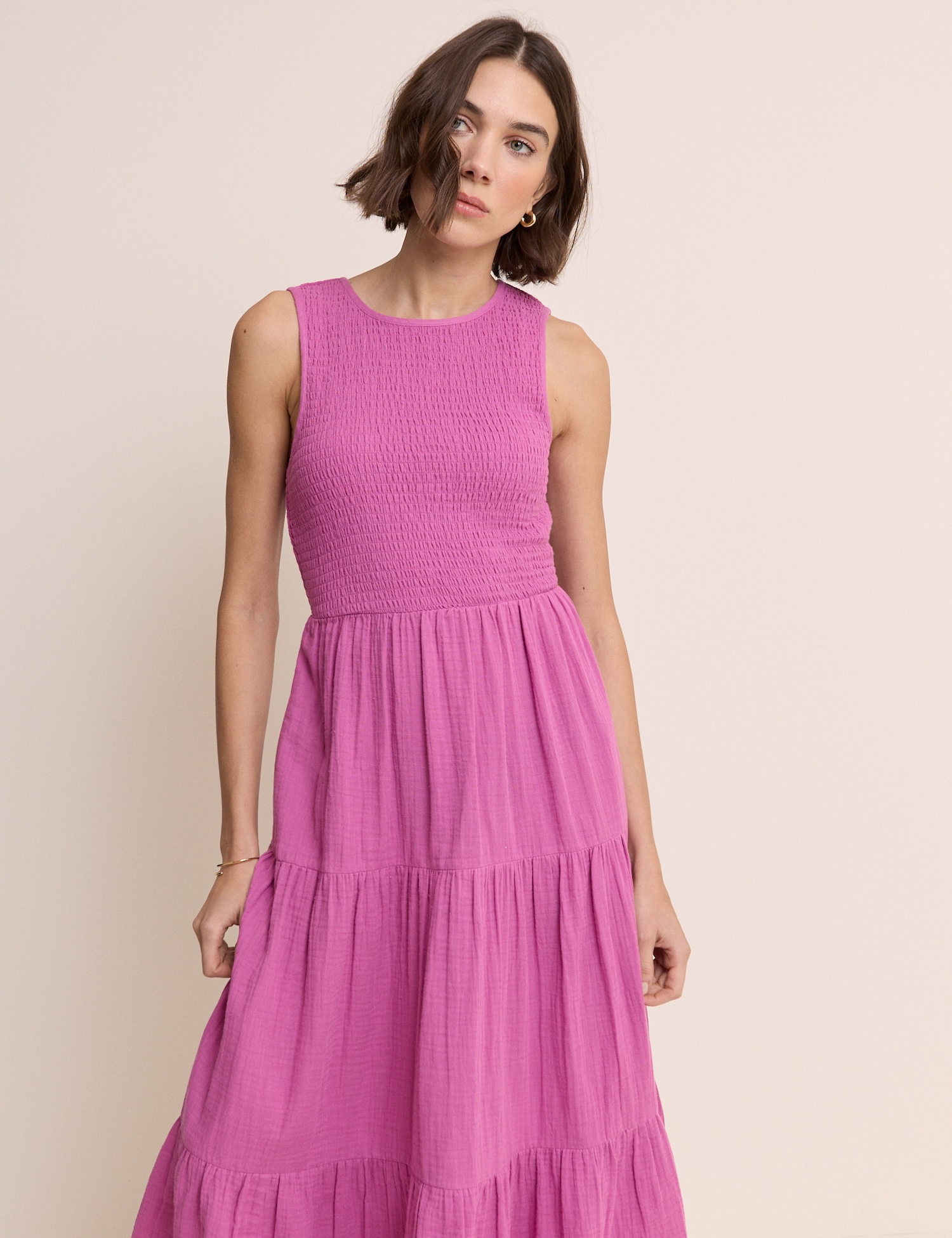 Das leichte Sommerkleid in kräftiger Farbe wirkt frisch und gepflegt. Es passt gut für den Alltag und entspannte Wochenendausflüge.
