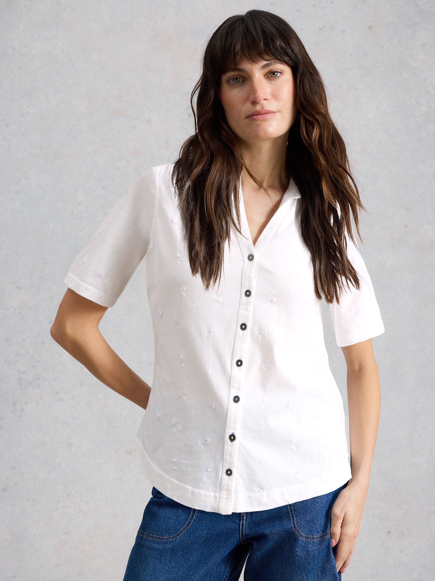 Ein leichtes Hemd mit markantem Navy-Print verleiht Ihrem Look Charakter. Der Jersey aus Bio-Baumwolle fühlt sich weich an und macht jede Bewegung mit.