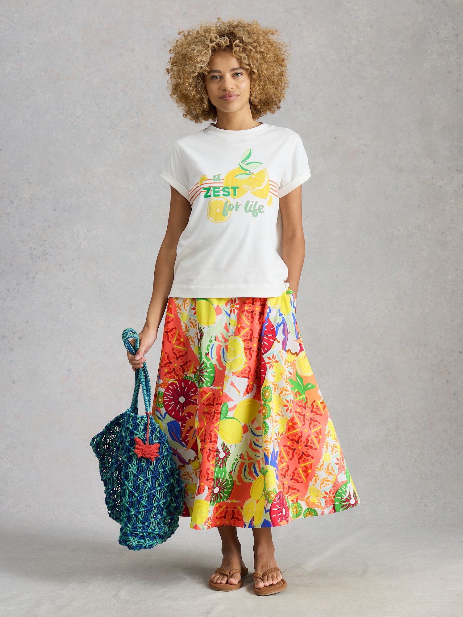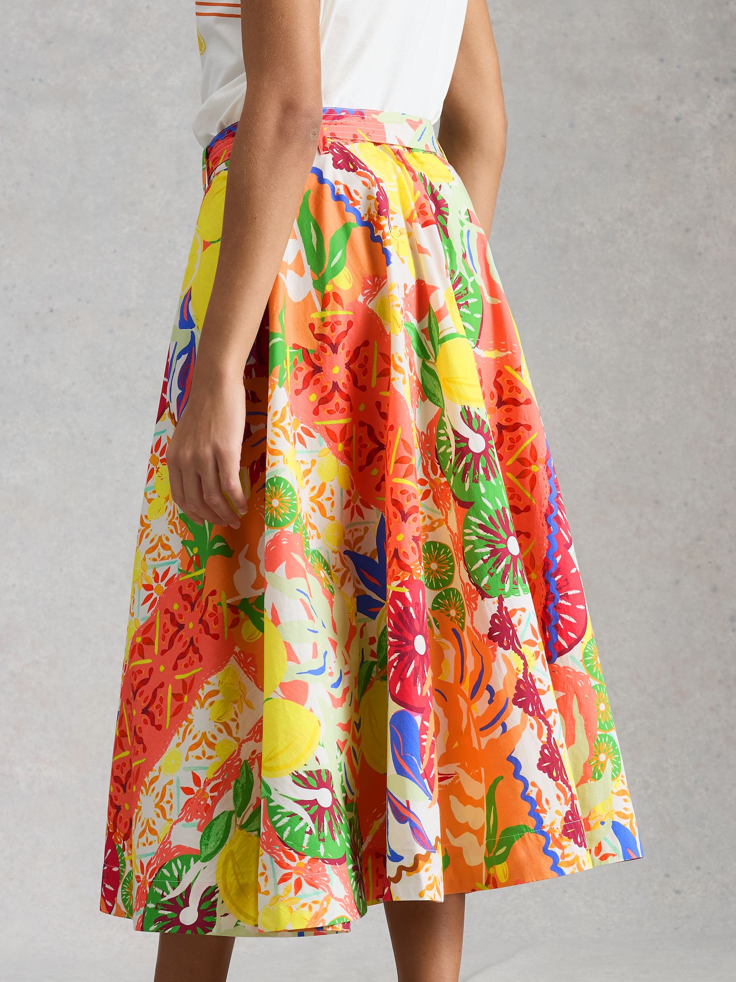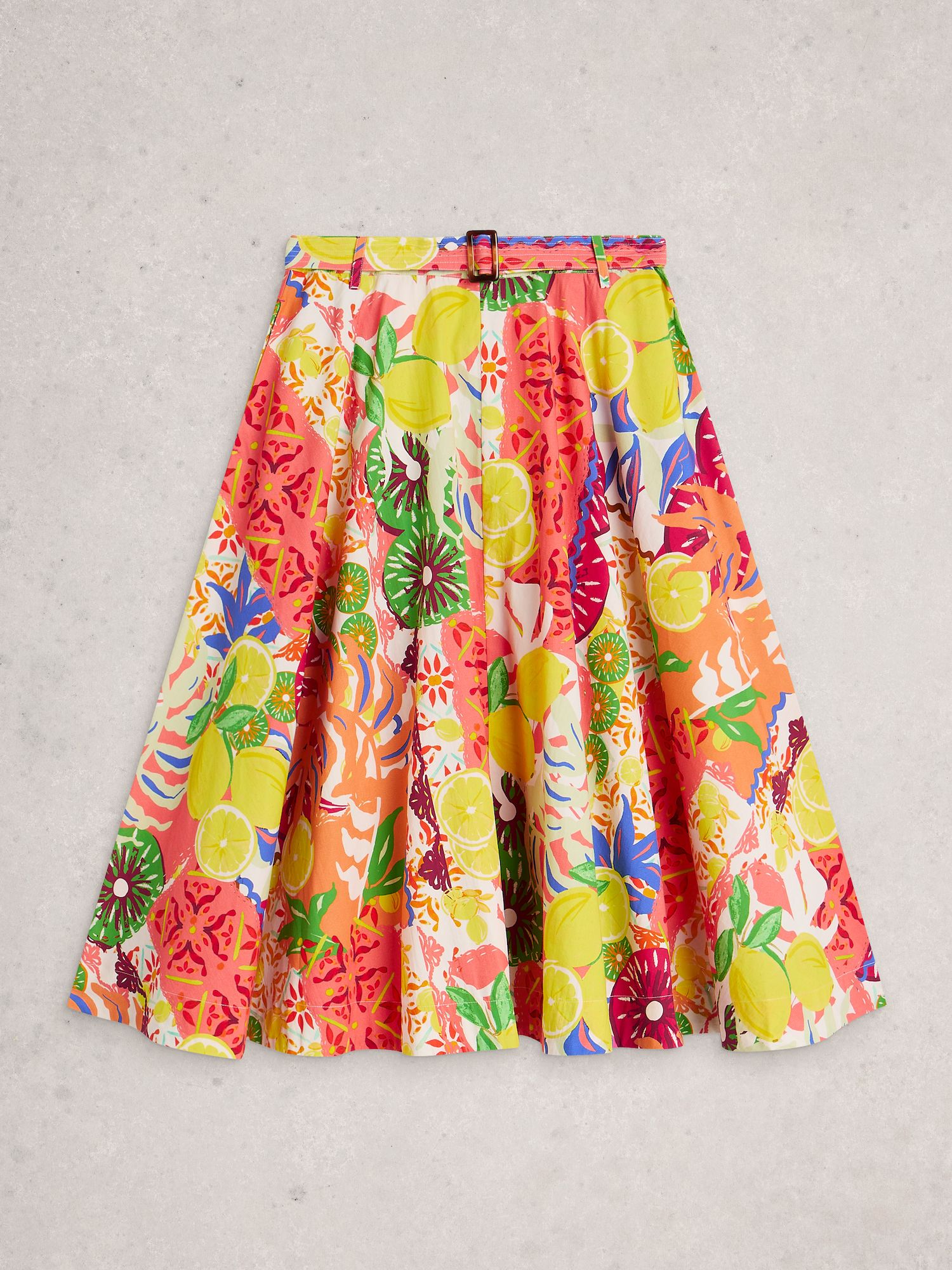 A-Linien-Rock mit strahlend gelbem Print, der sommerliche Laune macht. Reißverschluss und Gürtel sorgen für eine definierte Taille und feminine Silhouette.
