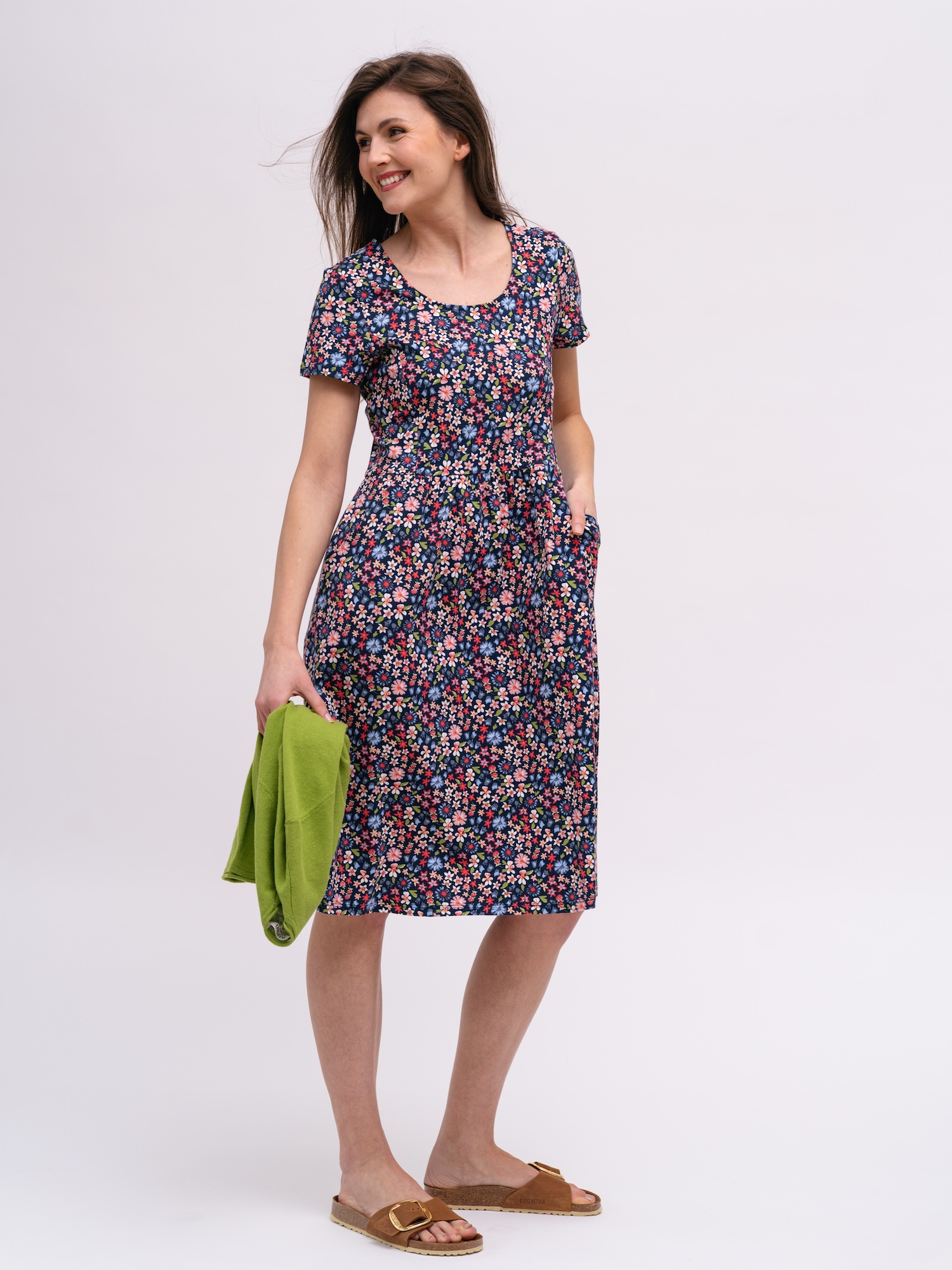 Suchen Sie ein Midi-Kleid mit klarer Form und verspielten Details? Die Dreiviertelärmel mit Manschetten verleihen dem Modell eine elegante Alltagstauglichkeit.
