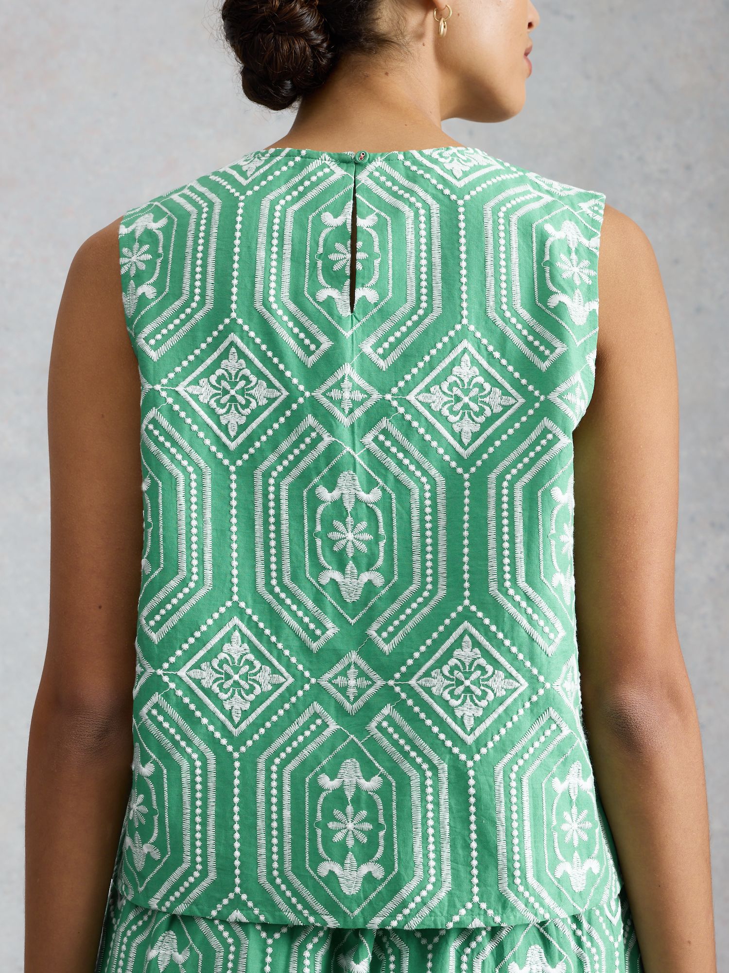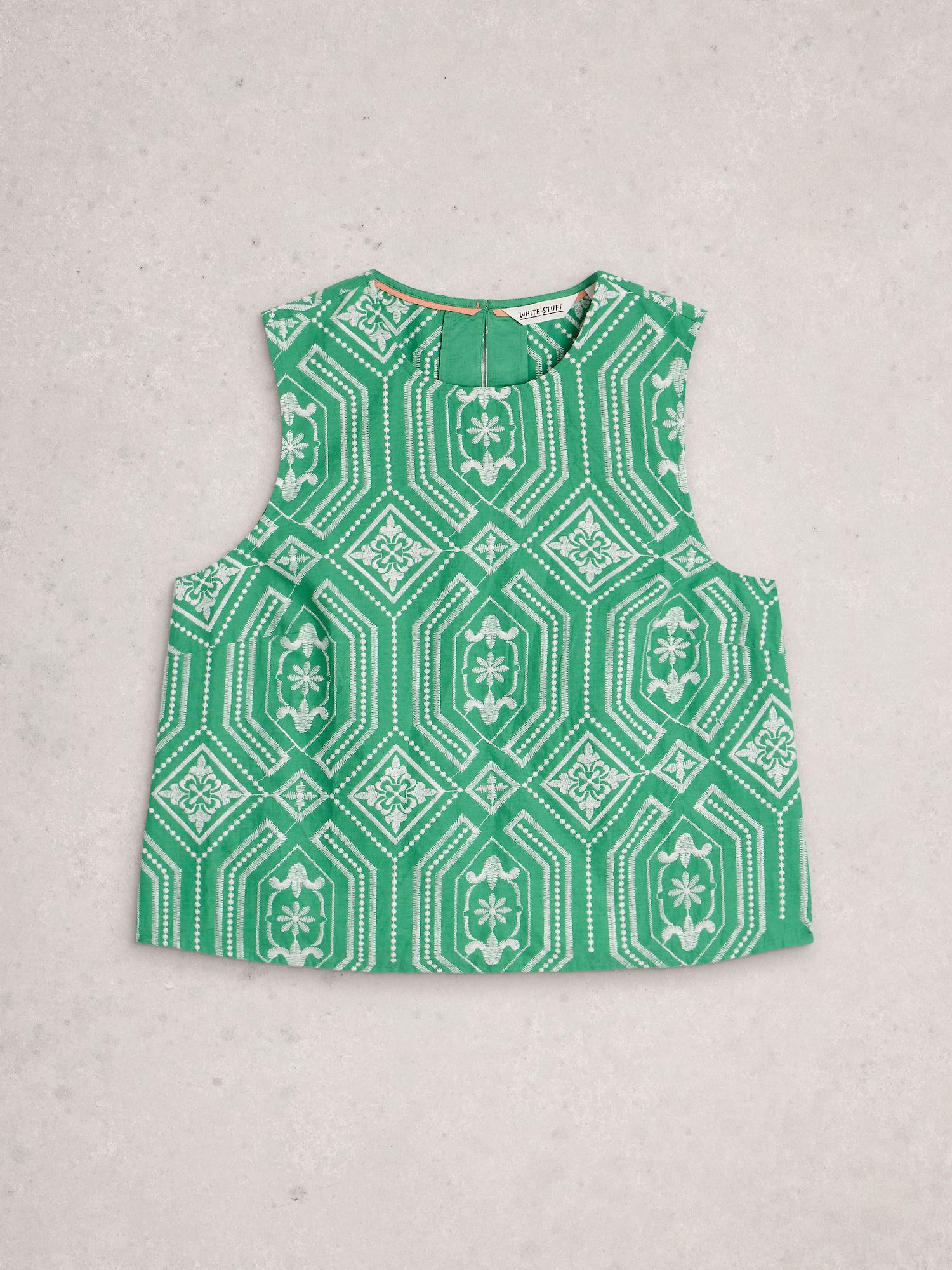 Leichtes, locker geschnittenes Top aus gewebter Baumwolle. Hinten mit Knopfverschluss, ungefüttert und nicht elastisch.