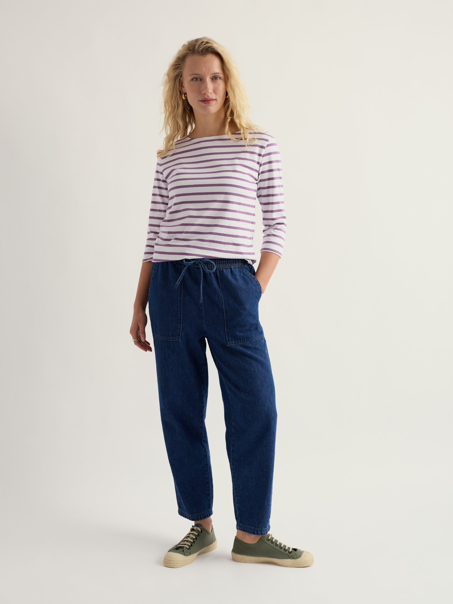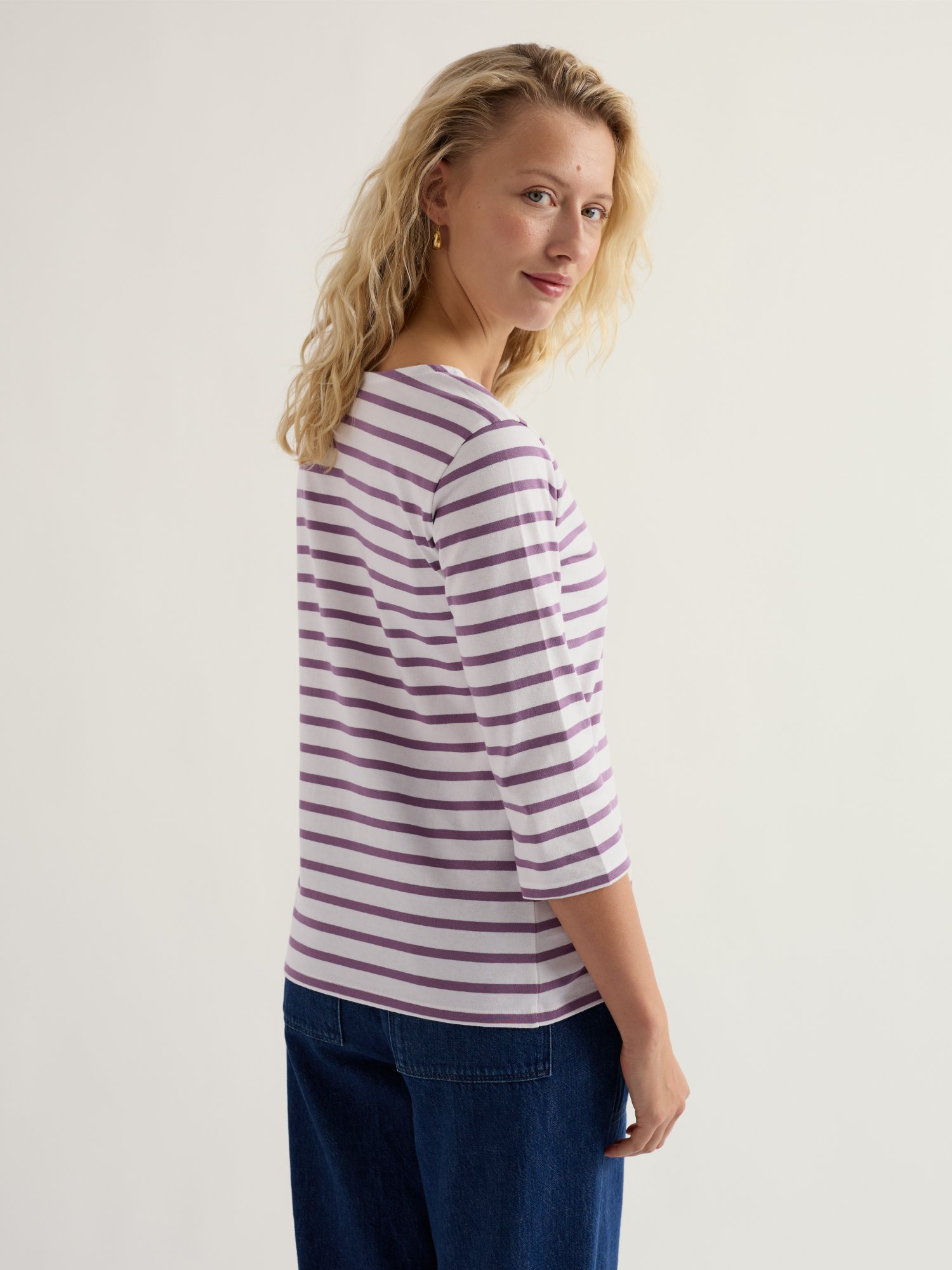 Das gestreifte Top im lockeren Schnitt verleiht dem Alltag eine unkomplizierte Eleganz. Dreiviertelärmel machen es zu einem vielseitigen Begleiter für verschiedene Anlässe.